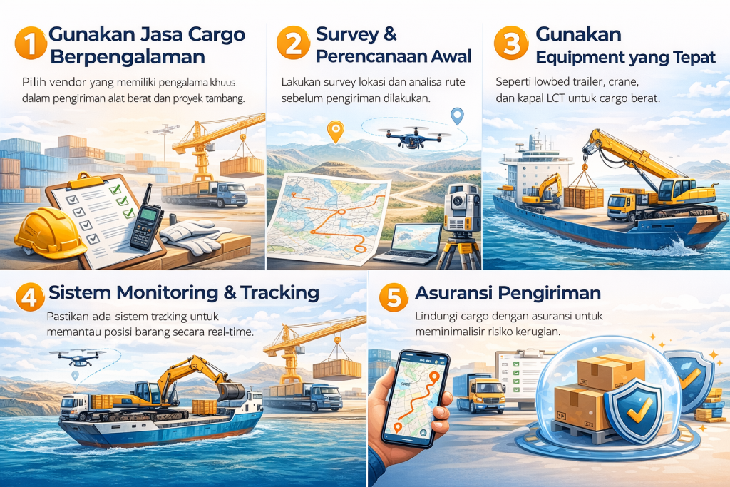 Pilih vendor yang memiliki pengalaman khusus dalam pengiriman alat berat dan proyek tambang.