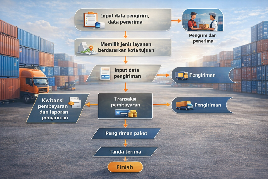 Pengiriman barang proyek ke luar pulau idealnya mengikuti alur kerja yang terstruktur dan dapat dikendalikan sejak awal hingga akhir.